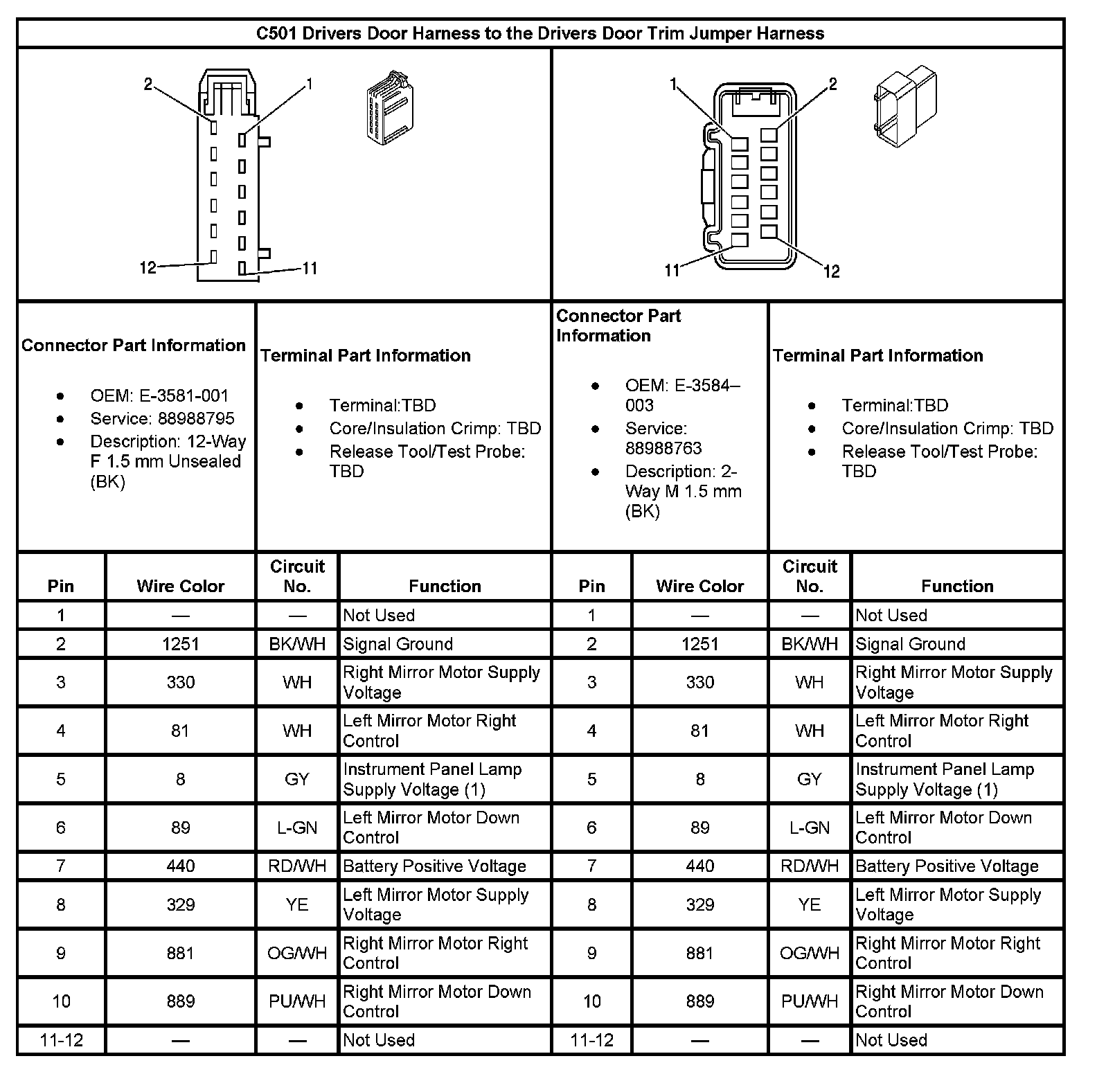 C501 Driver Door Harness To The Driver Door Trim Jumper Harness: