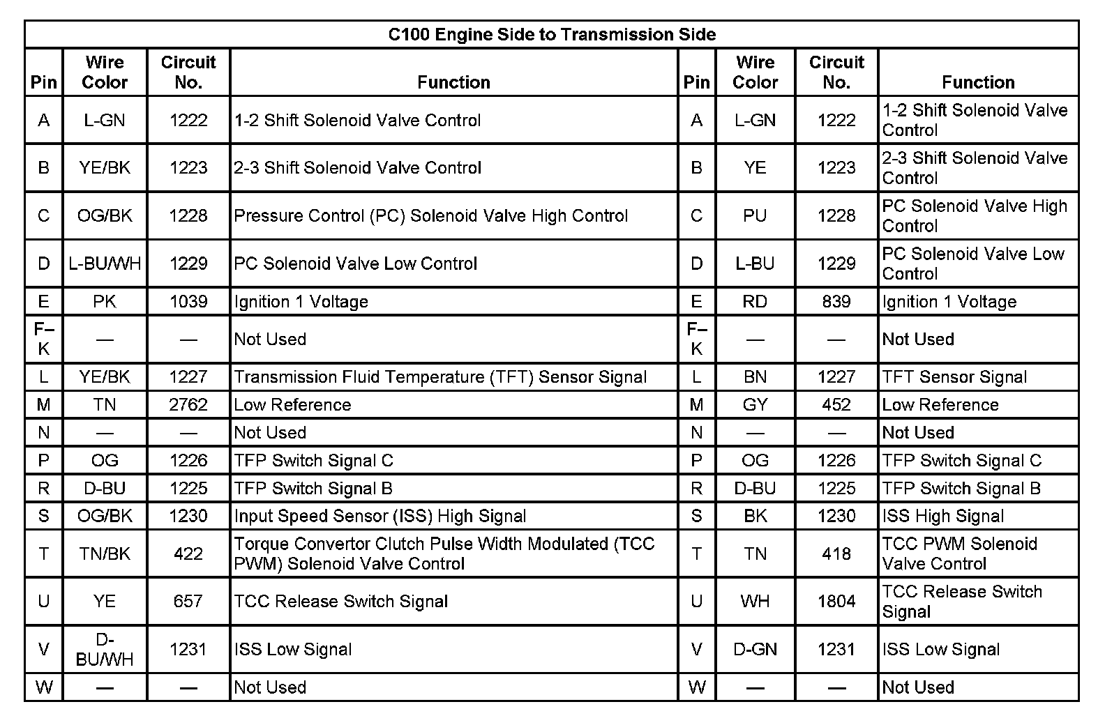 C100 Engine Side to Transmission Side: