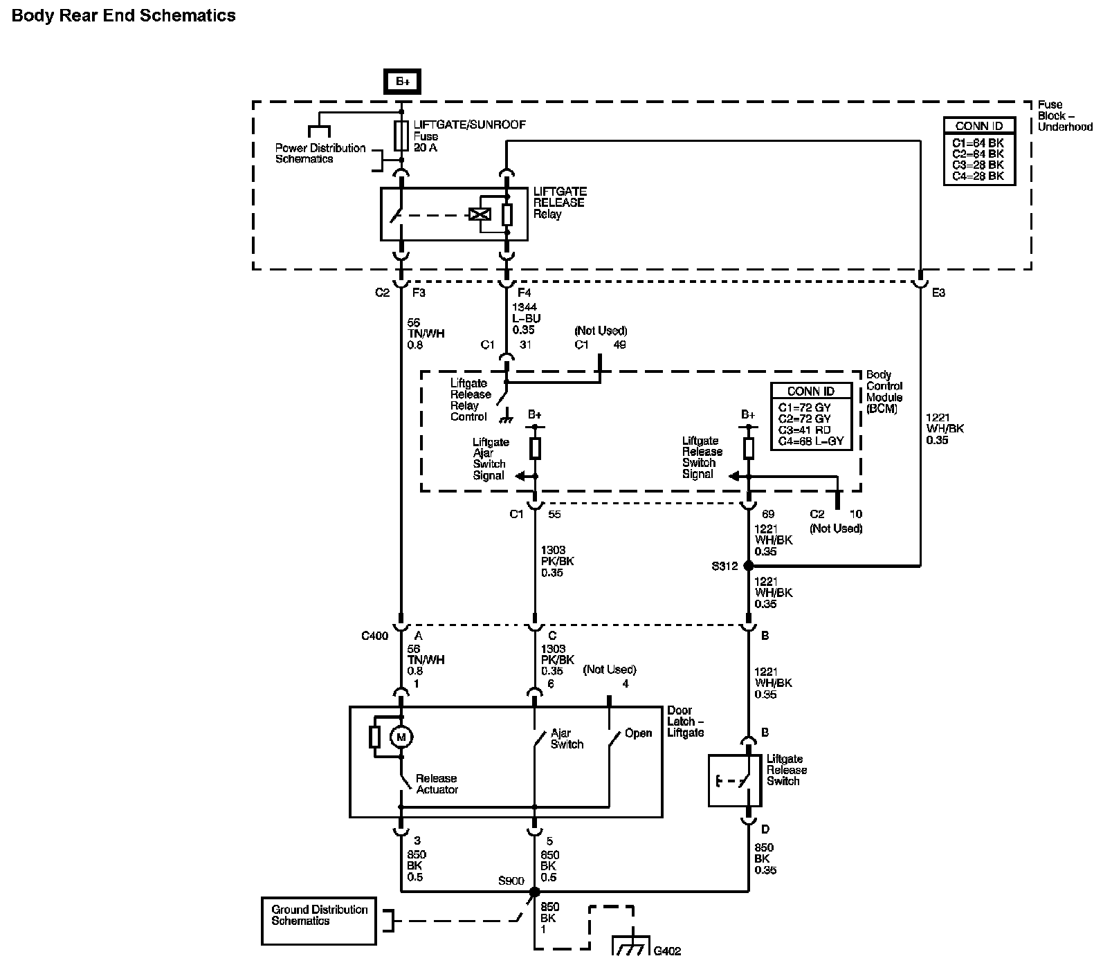 The locations for the Connectors, Grounds, Splices, and Grommets shown within these diagrams can be found via their numbers at Vehicle Locations.