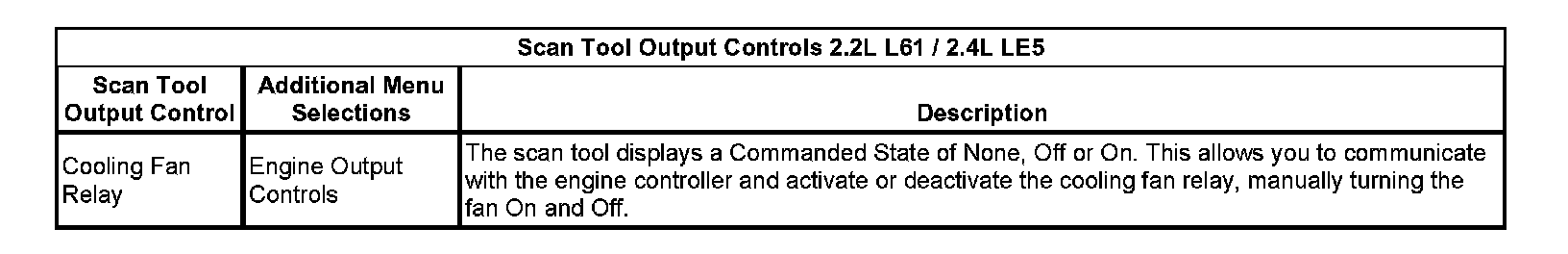 Scan Tool Output Controls Controls 2.2L L61/2.4L LE5:
