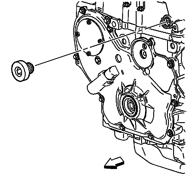 25. Apply sealant GM P/N 12378521 (Canadian P/N 88901148) or equivalent to the thread, and install the timing chain guide bolt access hole plug.