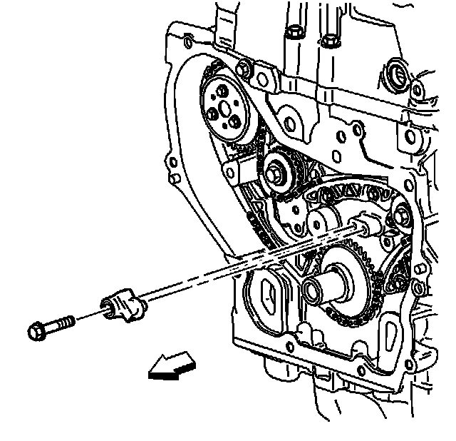 Install the adjustable timing chain guide through the opening in the cylinder head and install the adjustable timing chain bolt.