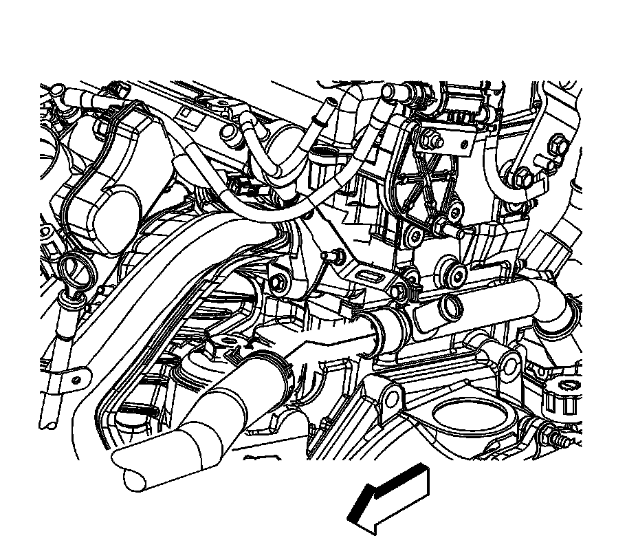 17. Remove the heater inlet and outlet hoses from the thermostat housing.