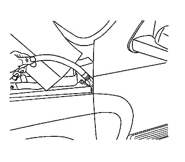9. Run water onto the body seam at the rear of the strut tower for a minimum of two minutes and inspect for water in the baffle area.