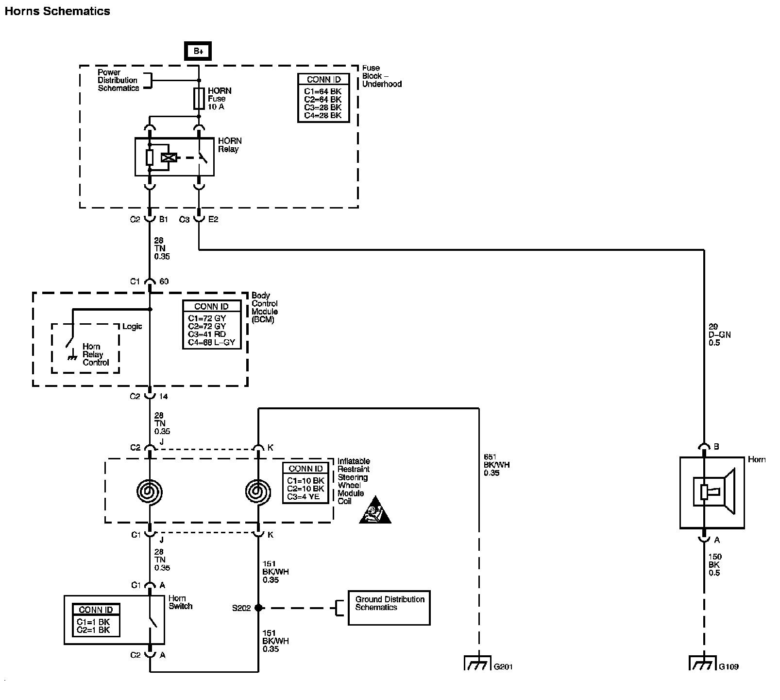 The locations for the Connectors, Grounds, Splices, and Grommets shown within these diagrams can be found via their numbers at Vehicle Locations.