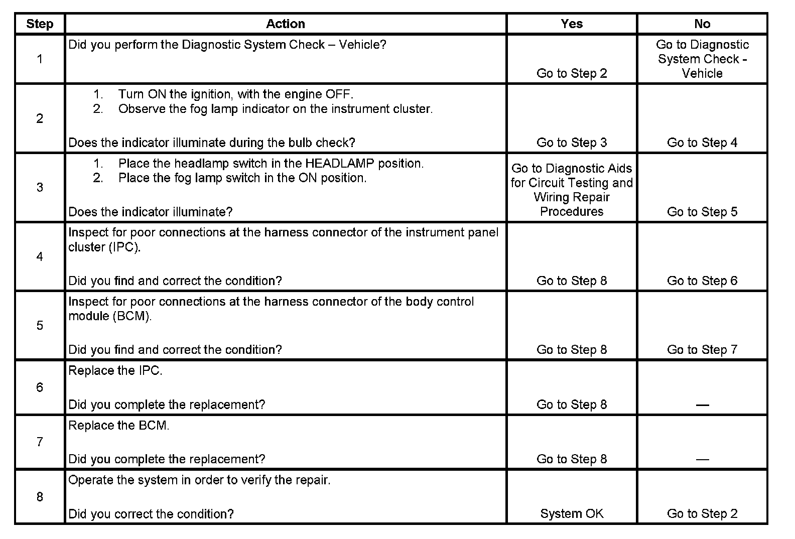Fog Lamp Indicator Inoperative