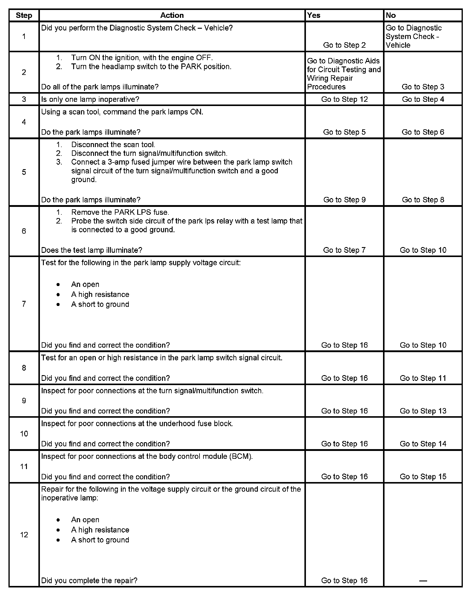 Park Lamps Inoperative