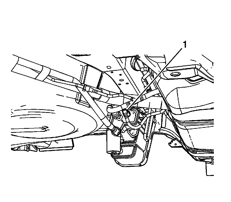 6. Disconnect the EVAP chassis pipe quick connect fitting (1) from the canister.
