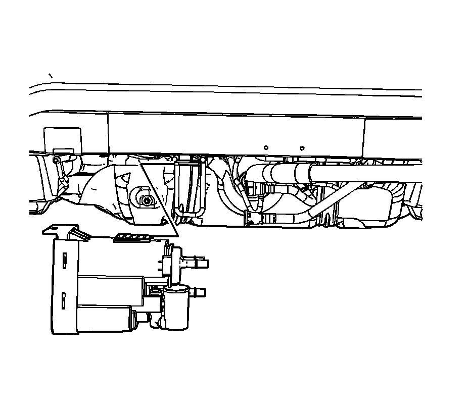 2. Install the EVAP canister by sliding the canister towards the passenger side of the vehicle.