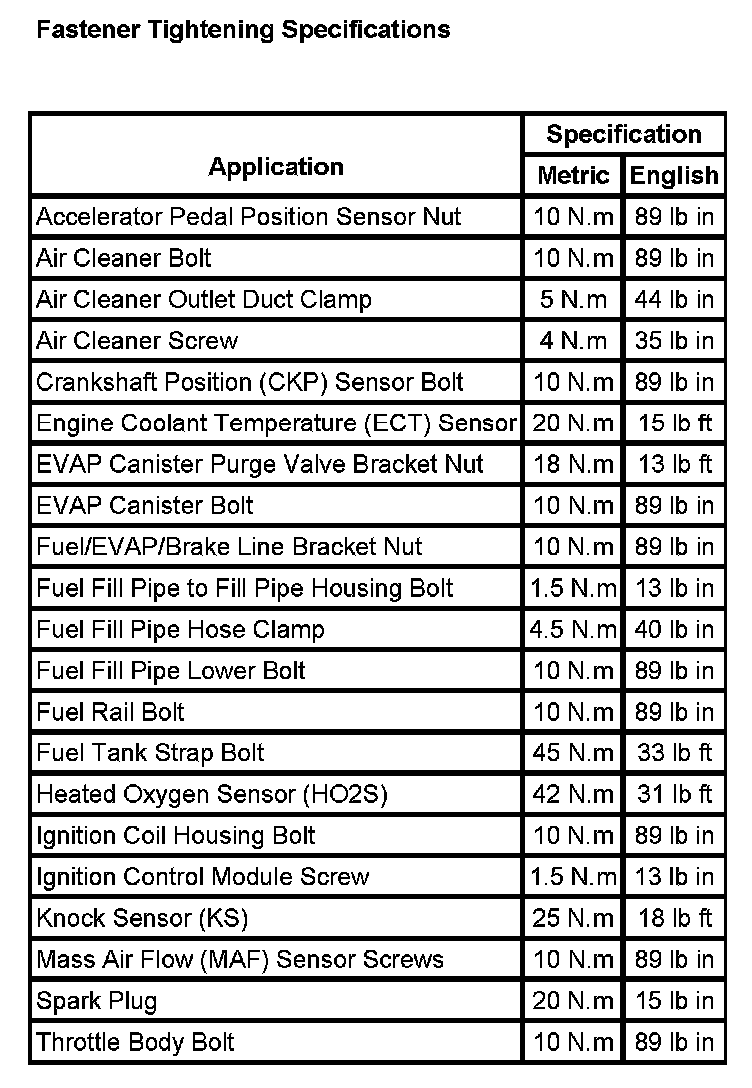 Fastener Tightening Specifications: