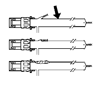6. Cut the seat belt pretensioner harness connector out of the vehicle, leaving at least 16 cm (6 in) of wire at the connector.