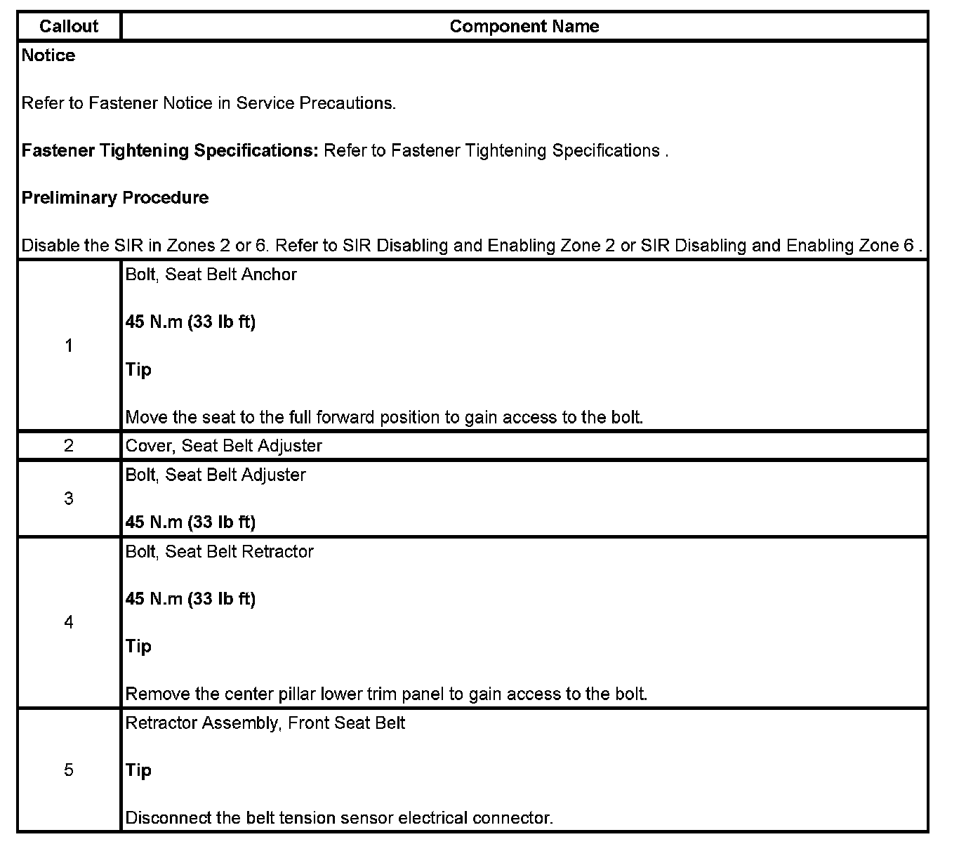 PRETENSIONER REPLACEMENT - FRONT