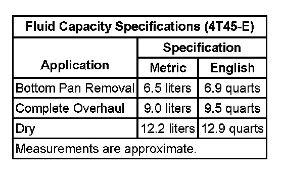 Fluid Capacity Specifications: