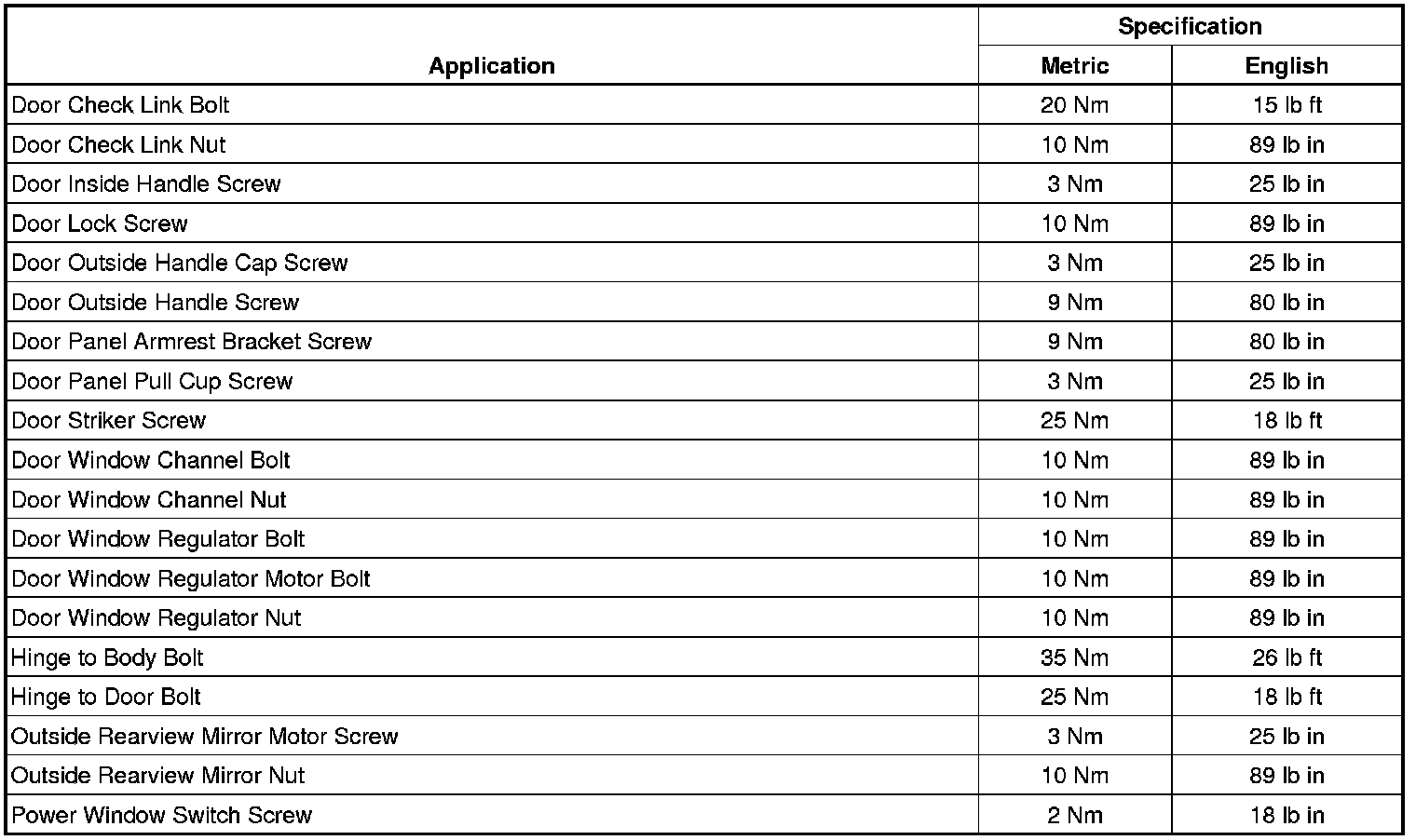 Fastener Tightening Specifications