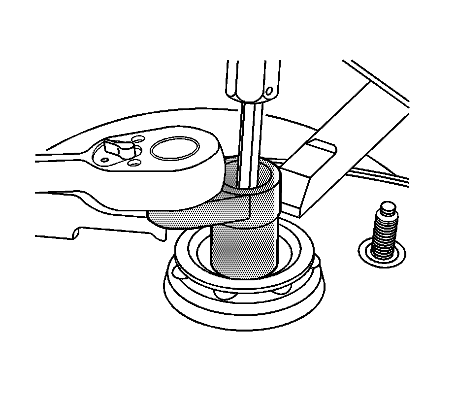 Use a 45 TORX socket in order to hold the strut shaft. Use a strut rod socket or equivalent to install the upper strut mount nut.