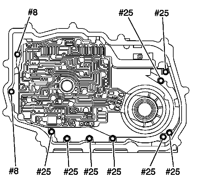 Tighten the two channel plate to case bolts (8) to 14 Nm (10.5 ft. lbs.).