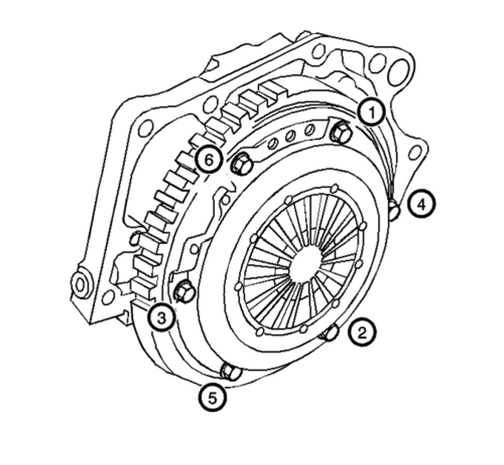 3. Install the clutch cover to flywheel bolts.