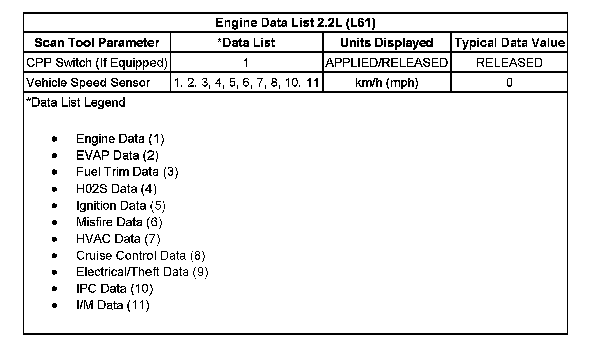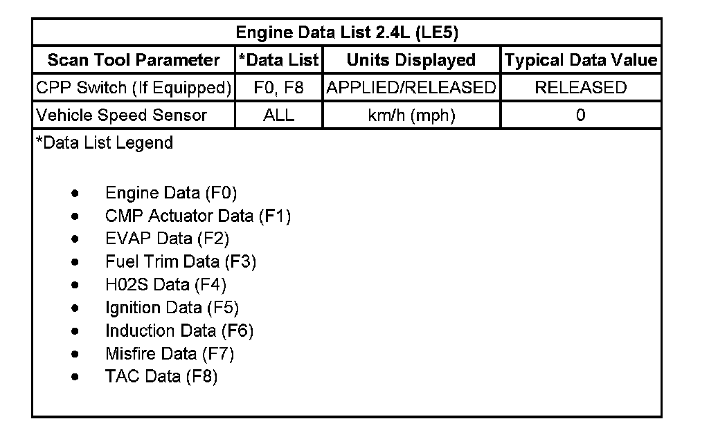Only the parameters listed below are used in this information for diagnosing. If a scan tool displays other parameters, the values are not recommended by General Motors for use in diagnosis.