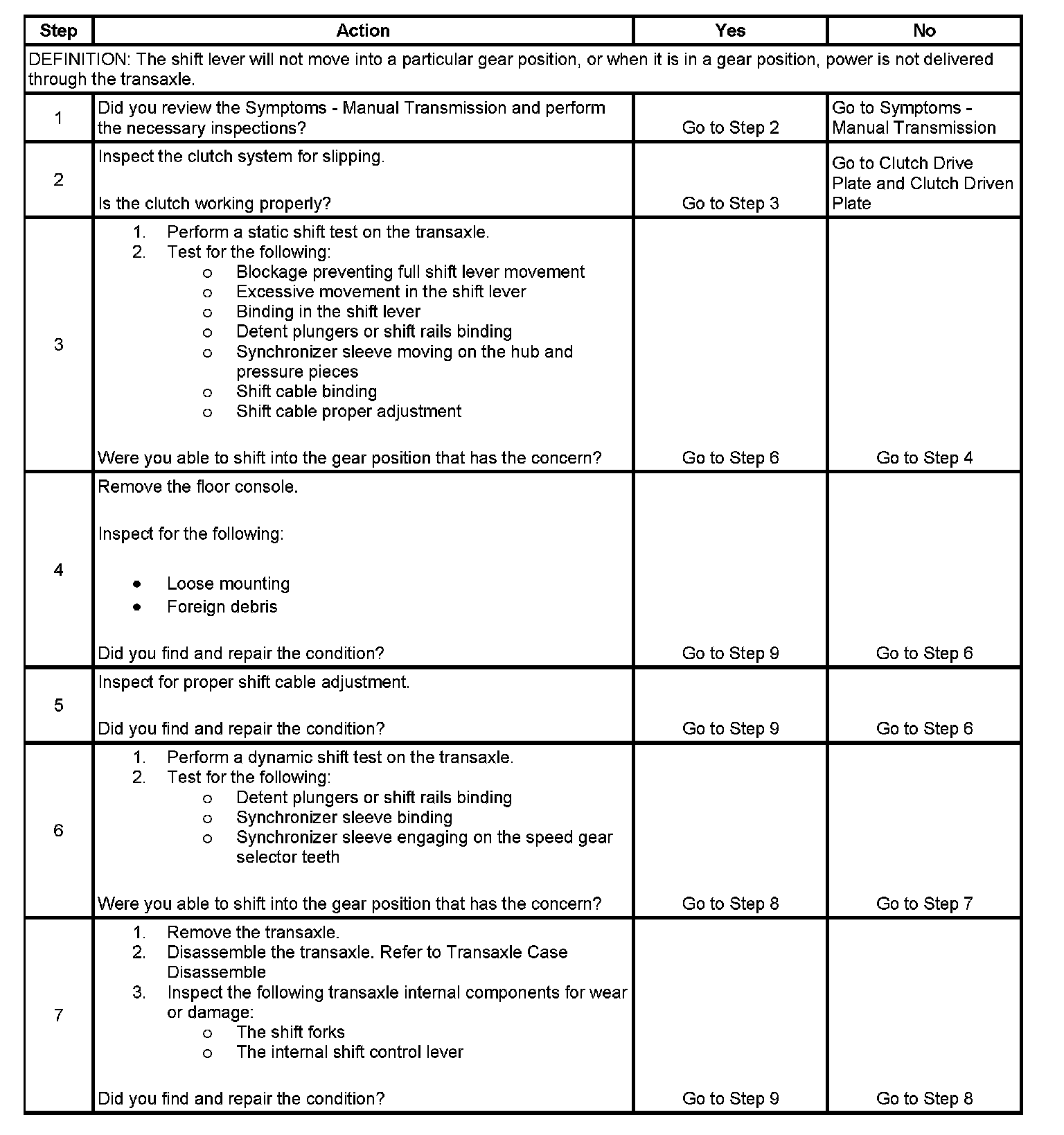 2. This step is to confirm that the clutch is not slipping. During certain conditions, the clutch may slip, and feel as though the transaxle is not in gear.