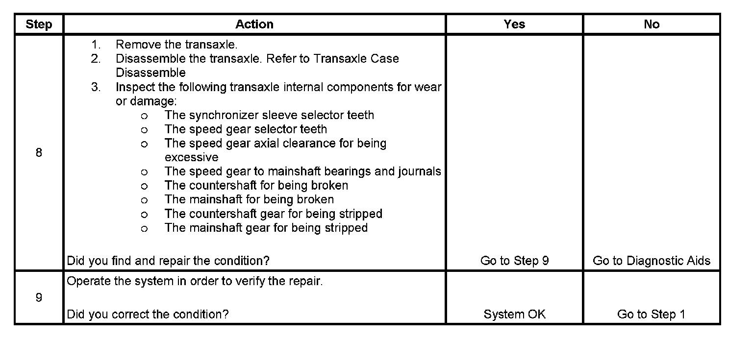 If the transaxle shifts into gear and then jumps out of gear, refer to Transmission Jumps Out of Gear. If it is an intermittent condition, other driveline components may be faulty. Transmission Jumps Out of Gear