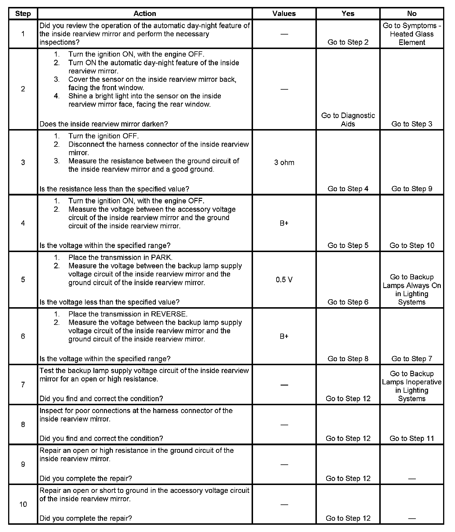 The automatic day-night feature of the inside rearview mirror may not operate properly or become inoperative due to an intermittent short to battery positive voltage in the backup lighting system.