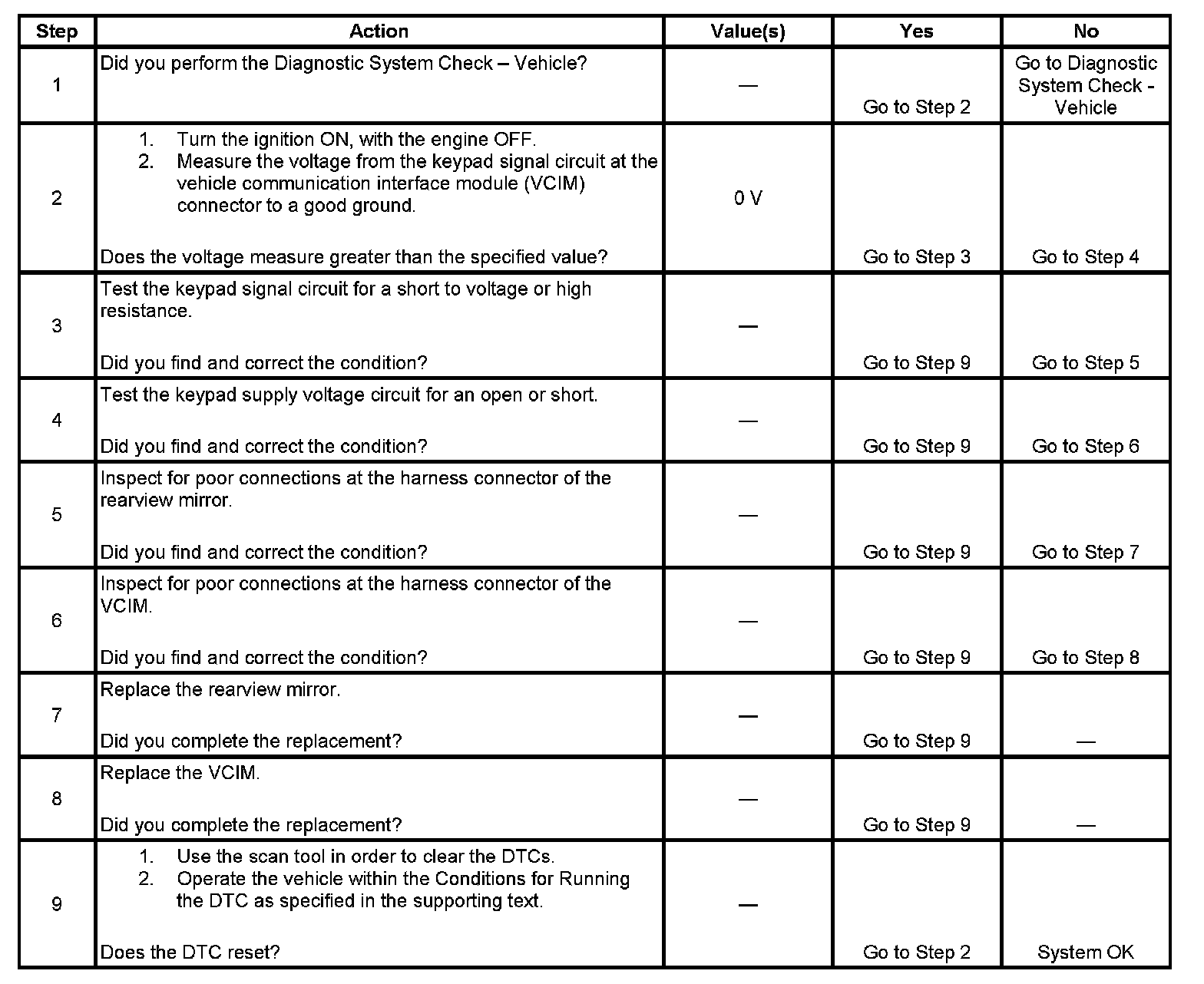 2. This step tests the at rest state of the keypad signal circuit.