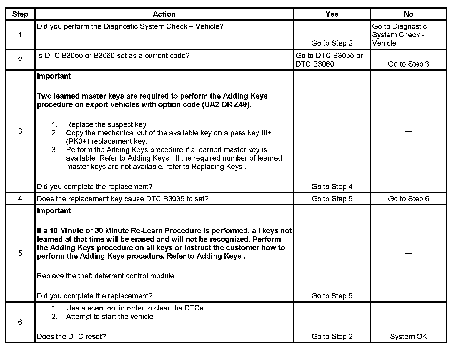 3. If a new key must be tried, the key must have the proper mechanical cut and the theft deterrent control module must "learn" the transponder value.