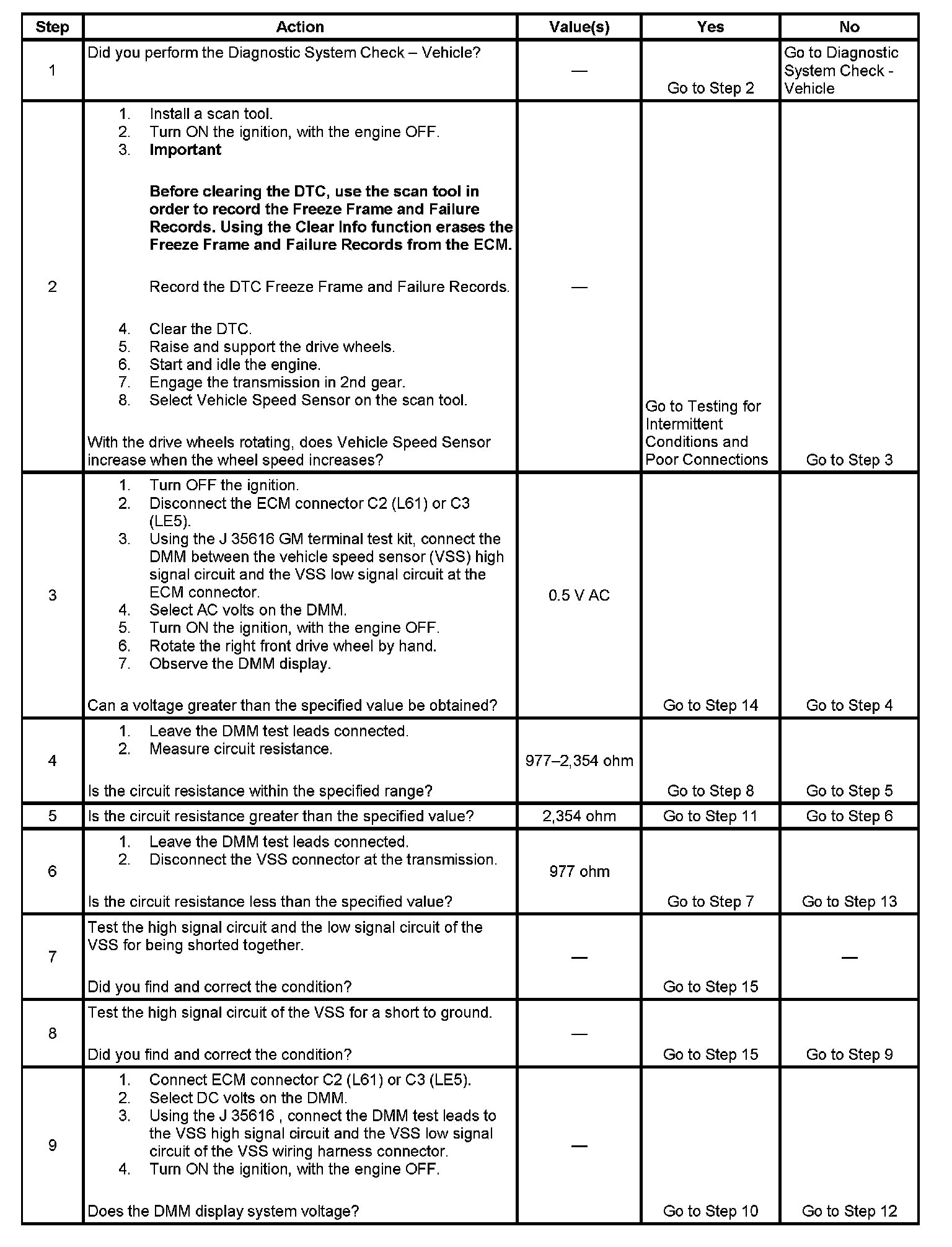 3. This step tests the ability of the VSS to produce an AC voltage. This step also verifies the integrity of the wiring to the ECM.
