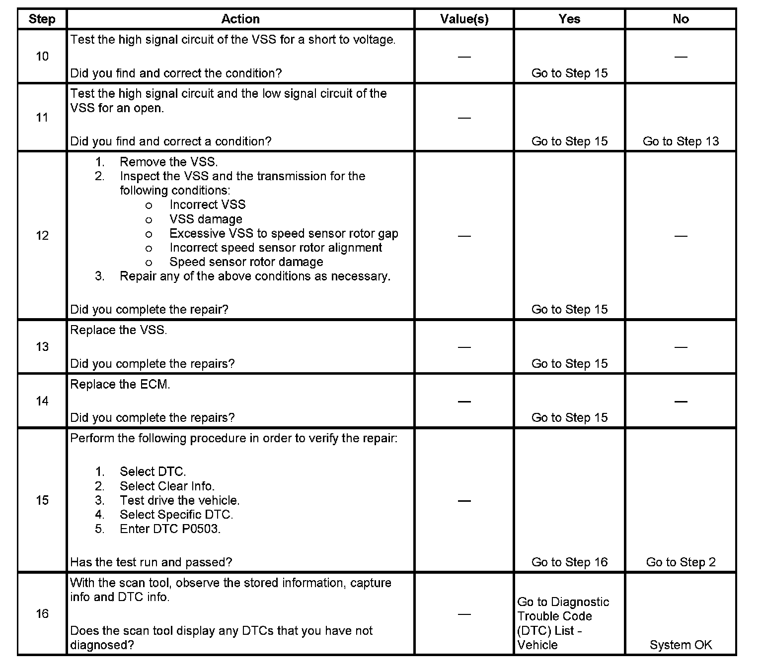 ^ The ECM stores DTC P0503 in ECM history during the second consecutive trip in which the Conditions for Setting the DTC are met.