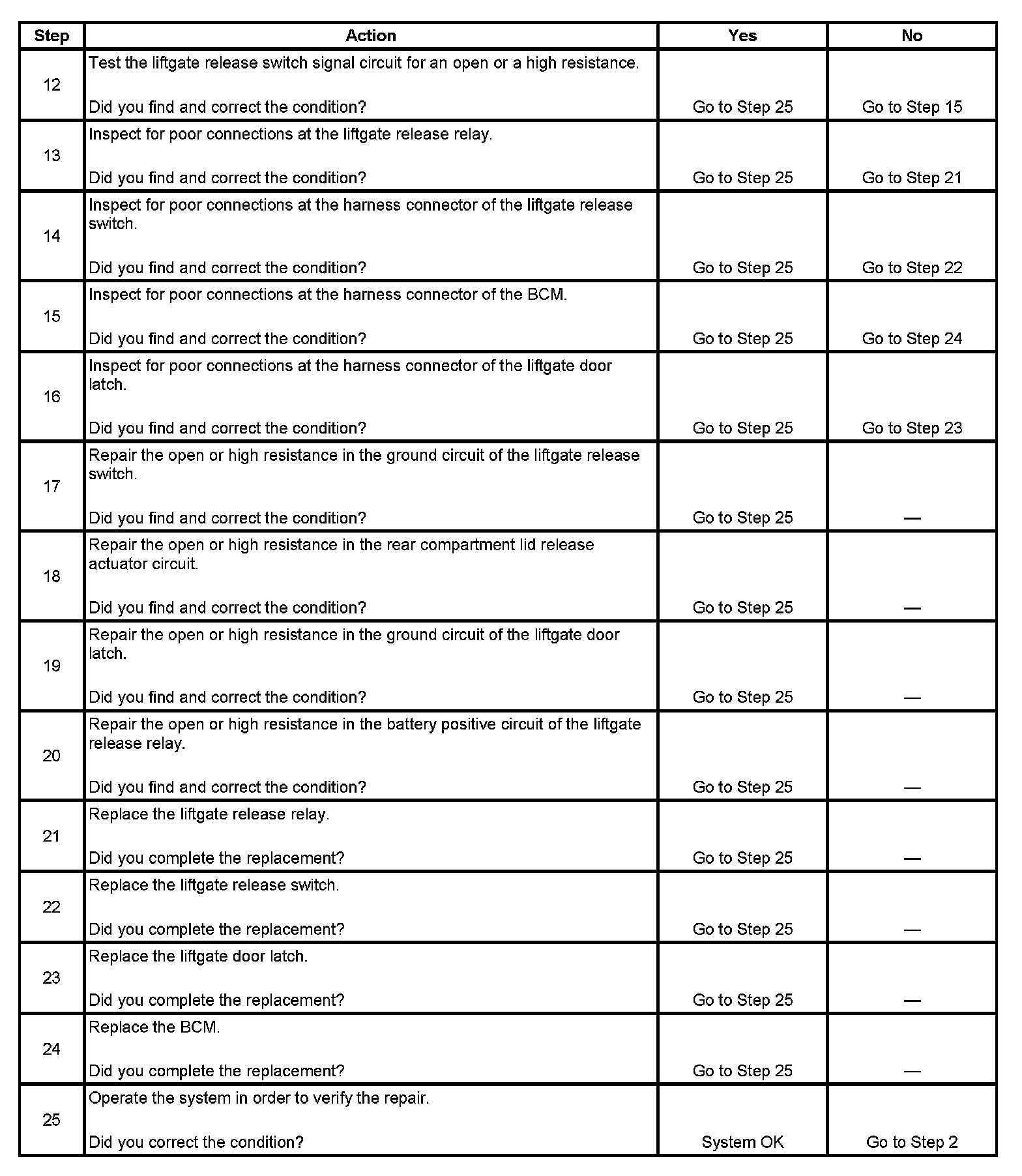 Liftgate Release Inoperative