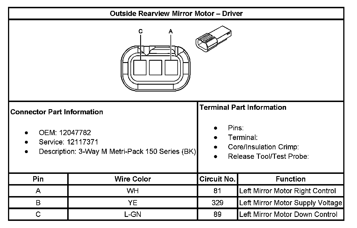 Outside Rearview Mirror Motor - Driver: