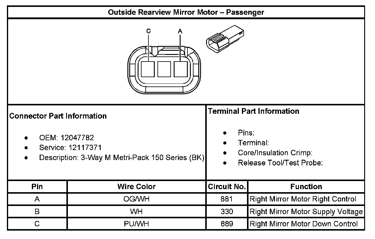 Outside Rearview Mirror Motor - Passenger: