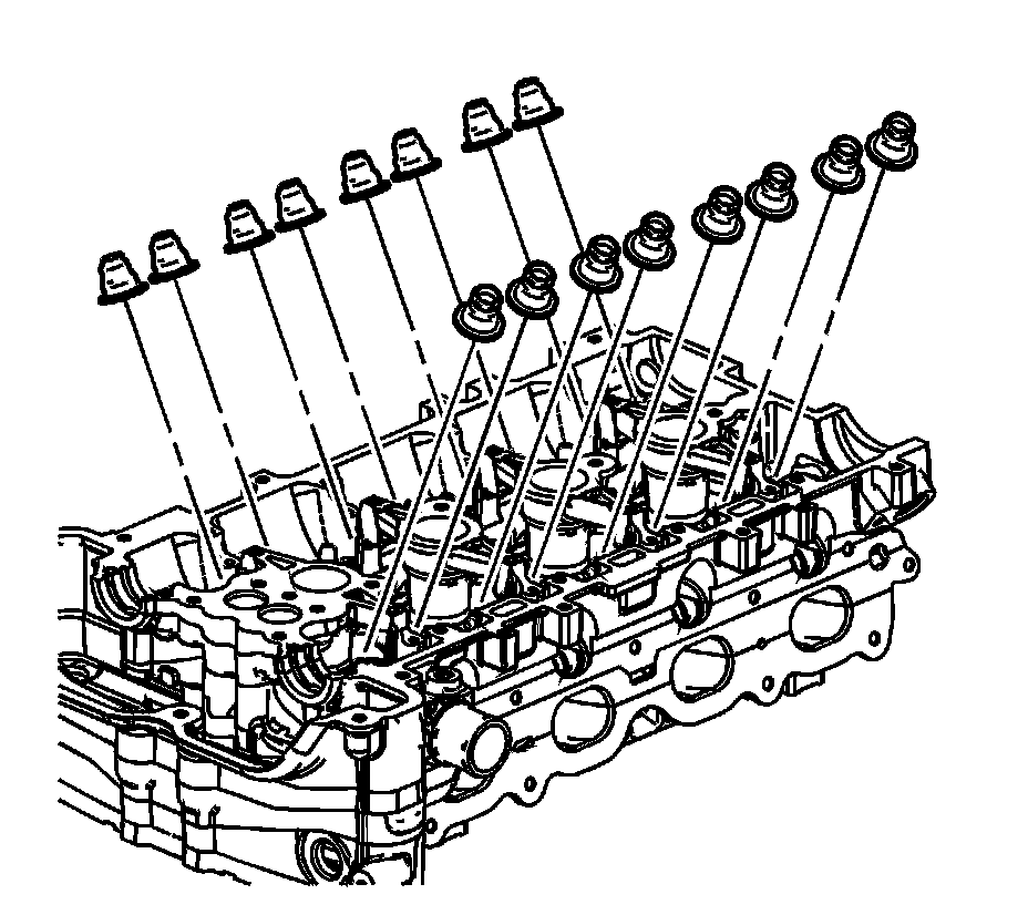 7. Install the new valve seals. Fully seat the seals on the valve guides.