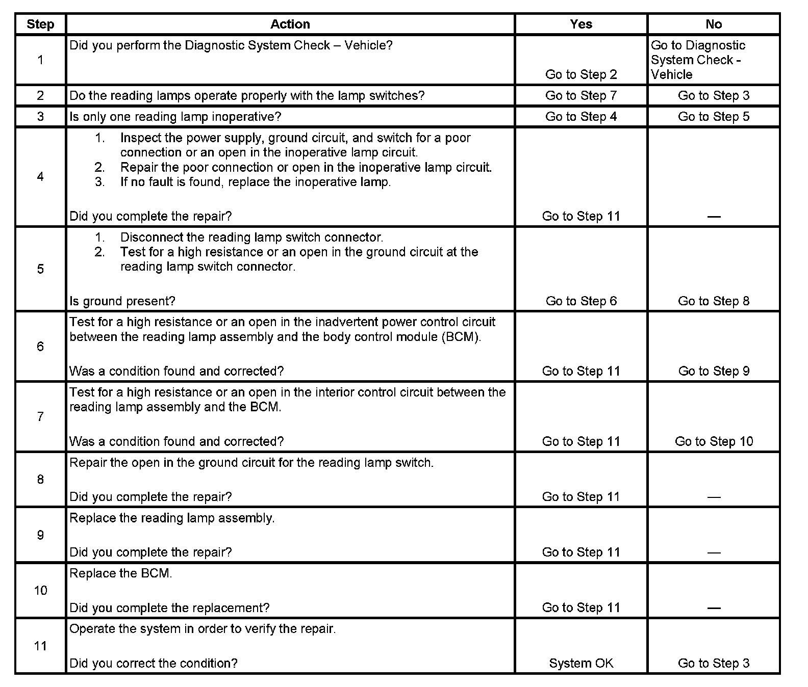 Reading Lamp(s) Inoperative