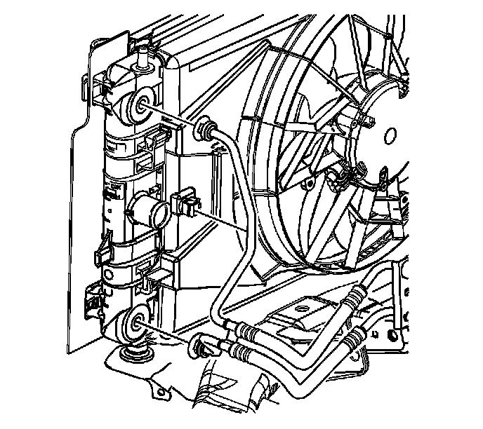 3. Install the transaxle oil cooler pipe to the retaining clip at the radiator.