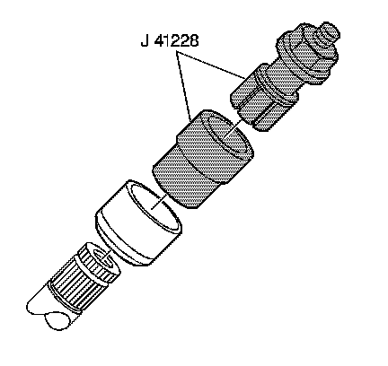 1. Use the J 41228 to install a new sleeve on the output axle shaft. Ensure that the collet is located in the snap ring groove when installing.