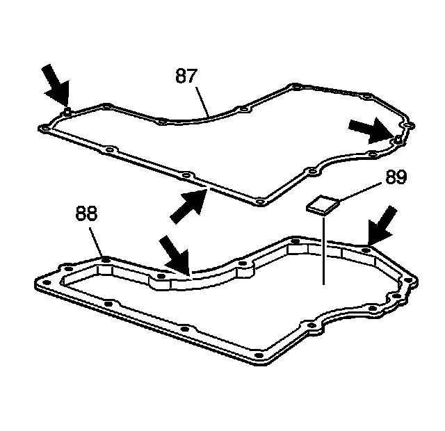 4. Install the gasket (87) and bottom pan (88) onto the transmission case.
