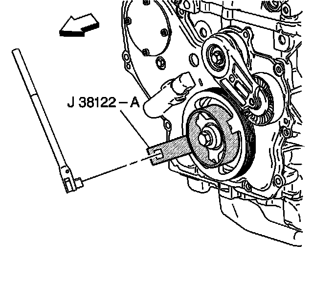 3. Using the J 38122-A, hold the crankshaft balancer.