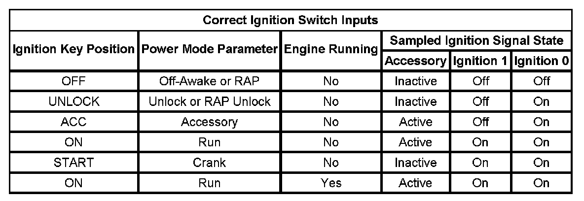 On vehicles that have several control modules connected by serial data circuits, one module is the power mode master (PMM). On this vehicle the PMM is the body control module (BCM). The BCM uses 3 signals from the ignition switch. These are the Ignition 0, Ignition 1, and Accessory.