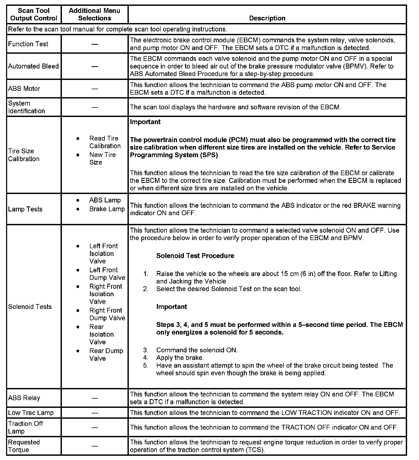 Scan Tool Output Controls: