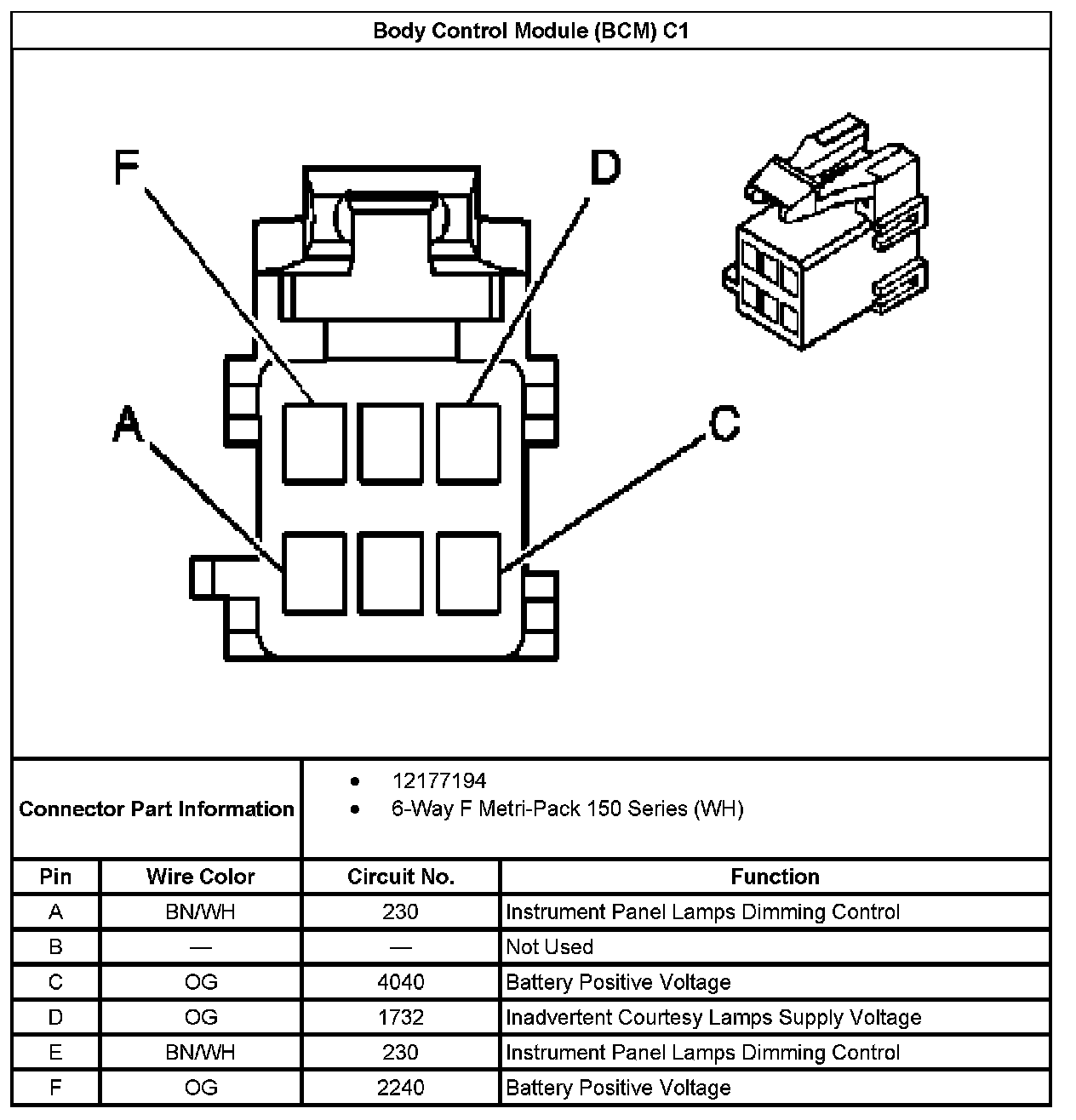 Body Control Module (BCM) C1: