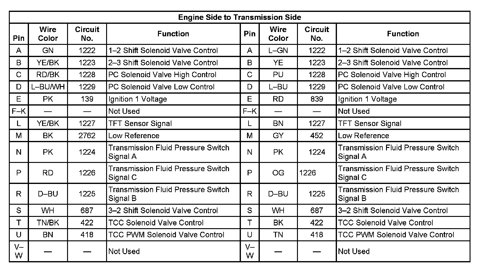 Automatic Transmission Inline 20-Way Connector End View