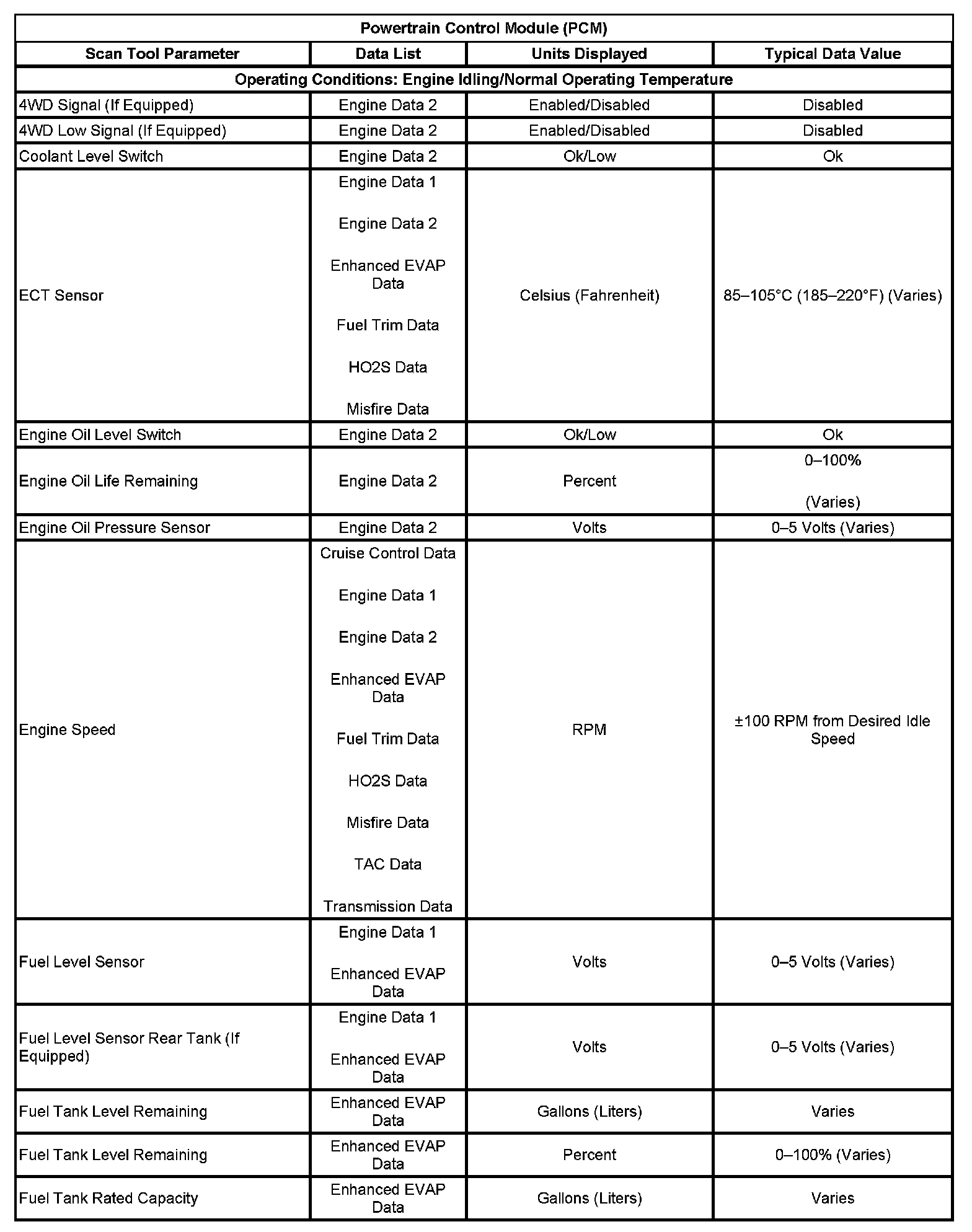 Scan Tool Data List