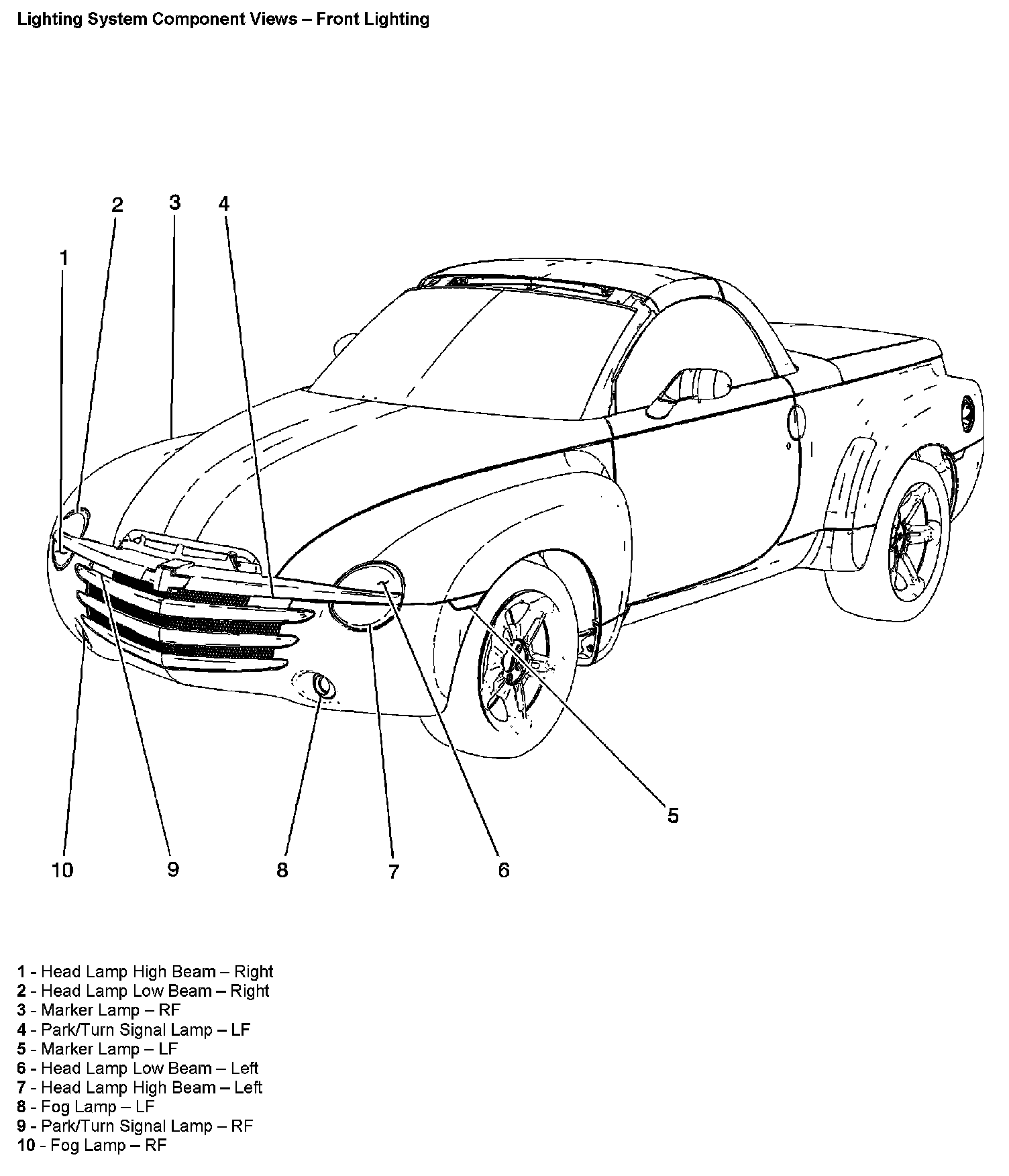 Lighting System Component Views - Front Lighting: