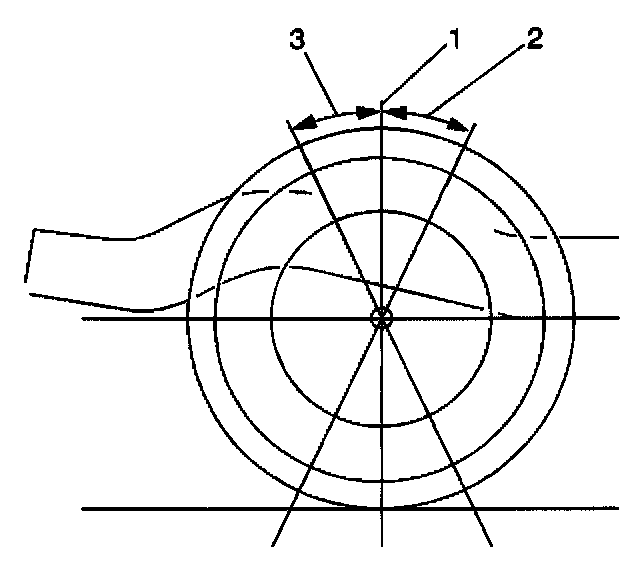 5. Adjust the caster and the camber angle by repositioning the lower control arm (2) until the specifications have been met.