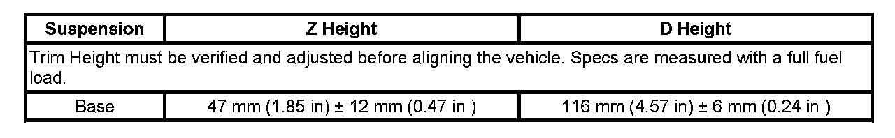 Trim Height Specifications: