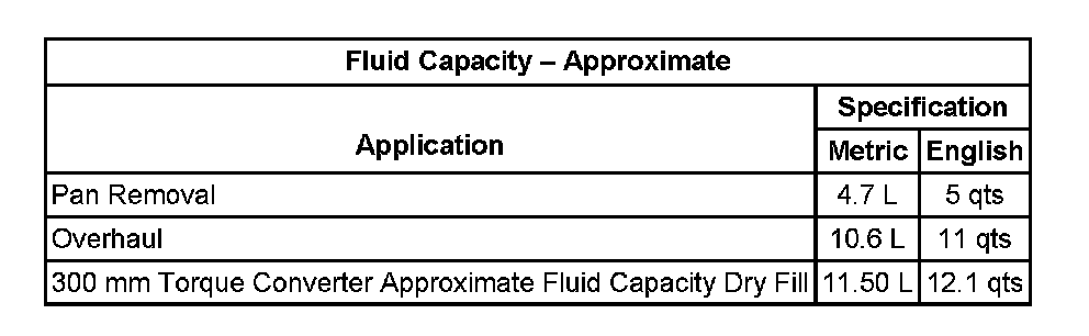 Fluid Capacity Specifications: