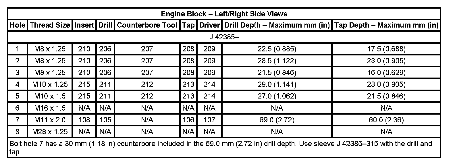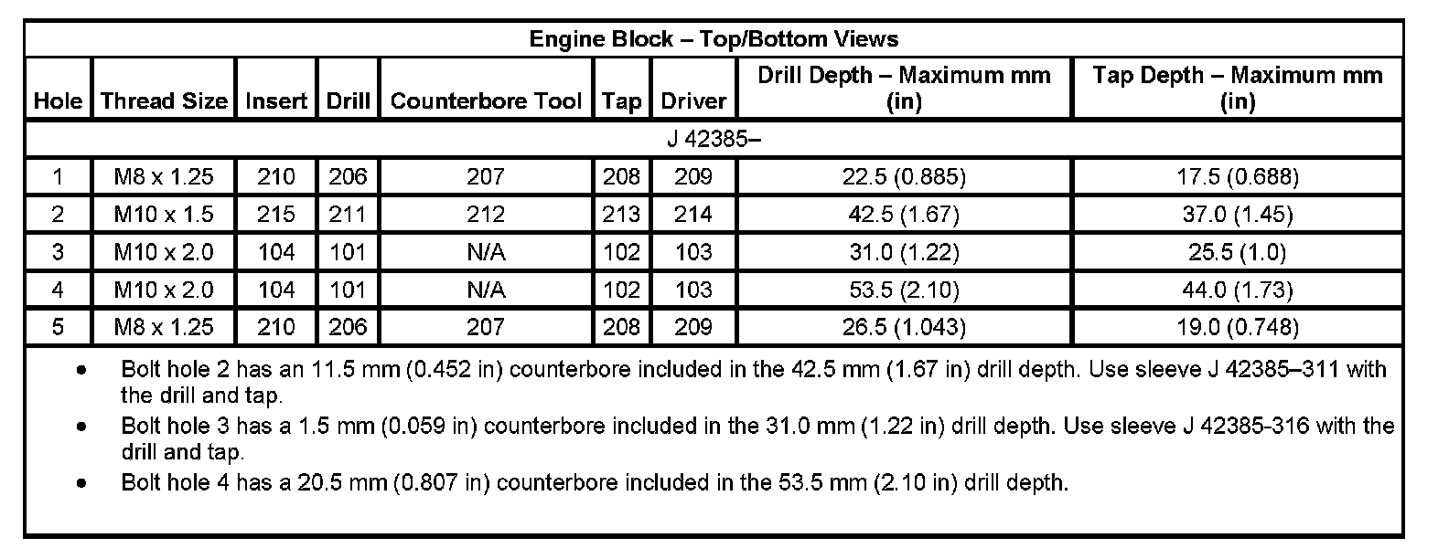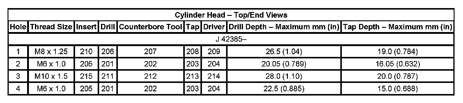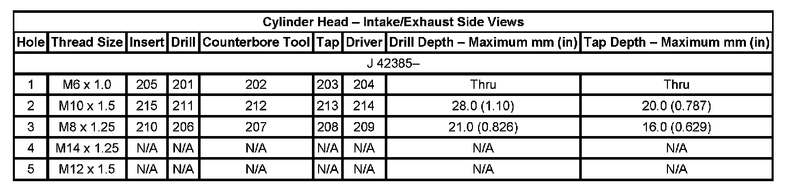 Thread Repair Specifications Engine Block: