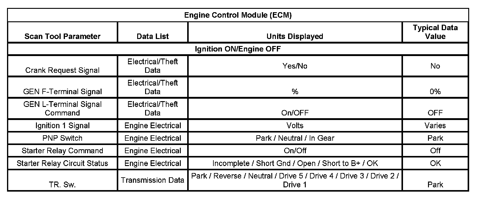 Scan Tool Data List