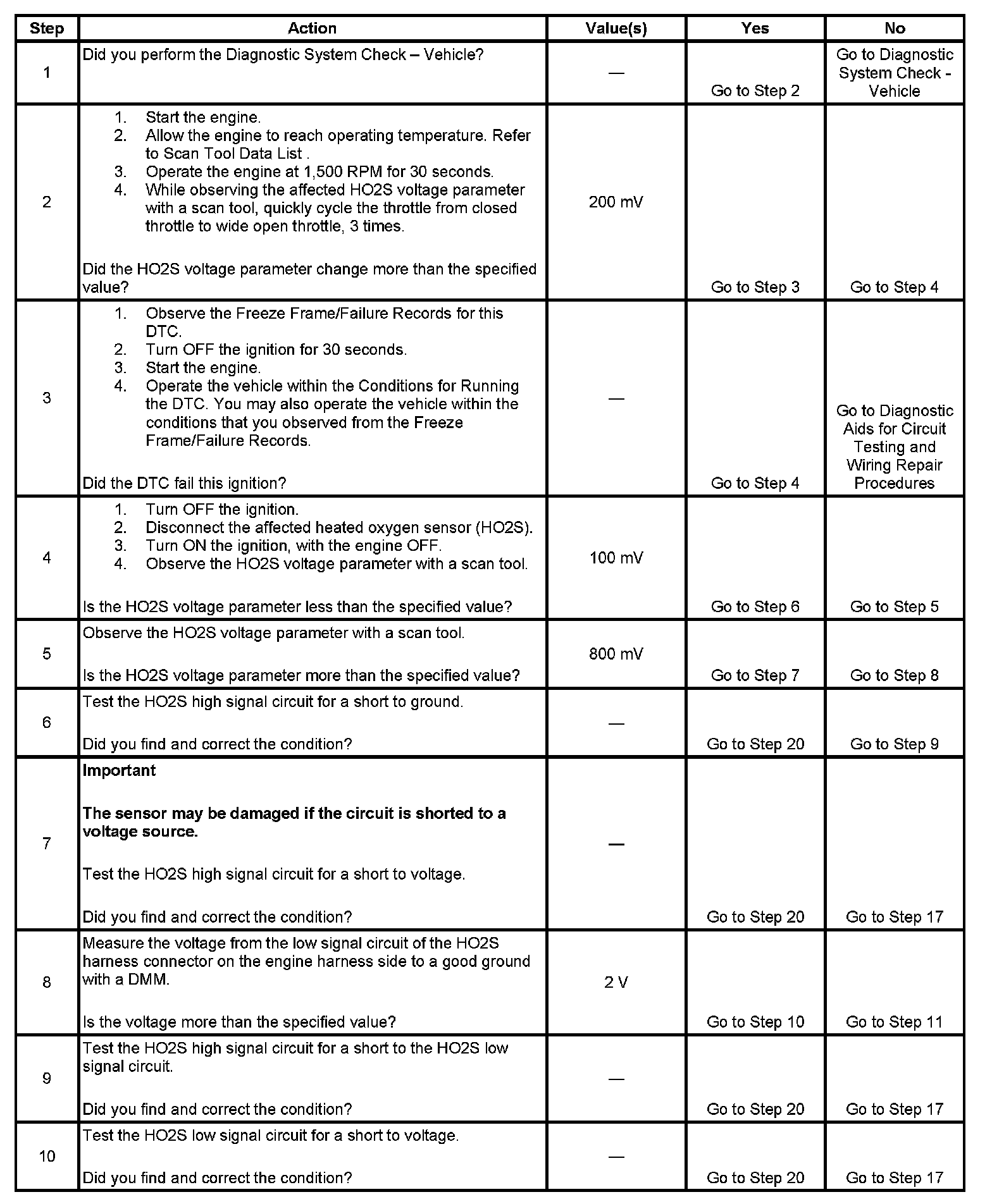 2. If the voltage does not change more than the specified value, the condition is present.